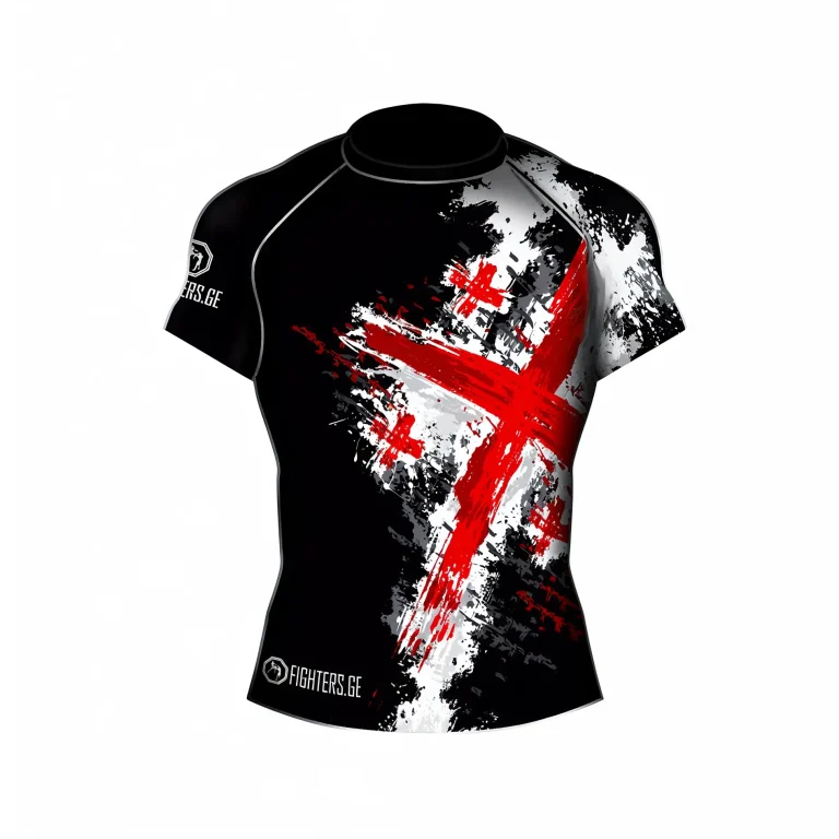 Fighters.ge designs performance gear tested by athletes in Georgia. Our Georgian Flag Rashguard delivers quick-dry comfort, 4-way stretch mobility, and durable flatlock stitching for BJJ, MMA, grappling, judo, wrestling and functional training. Professional fit, competition-ready finish.